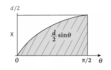 The needle crosses a (nearest) line when the vertical “reach” from its center to an endpoint is at least x.